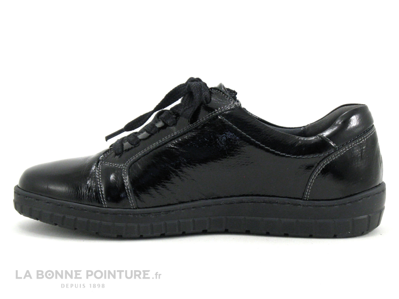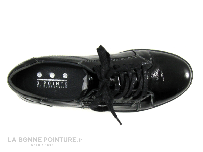 Un très bon rapport qualité / prix pour cette paire de chaussures Femme adaptées pieds larges en cuir noir verni 3 Points de Suspension Kiazip !