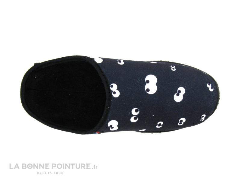 Cette jolie pantoufle mule Femme Airplum est en textile velouté noir, parsemé de paires de yeux qui scrutent dans tous les sens !