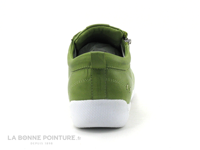 Cette basket basse Femme très souple est fabriquĂ©e avec un beau cuir vert, Ă l’aspect veinĂ© et nuancĂ©.