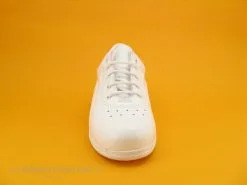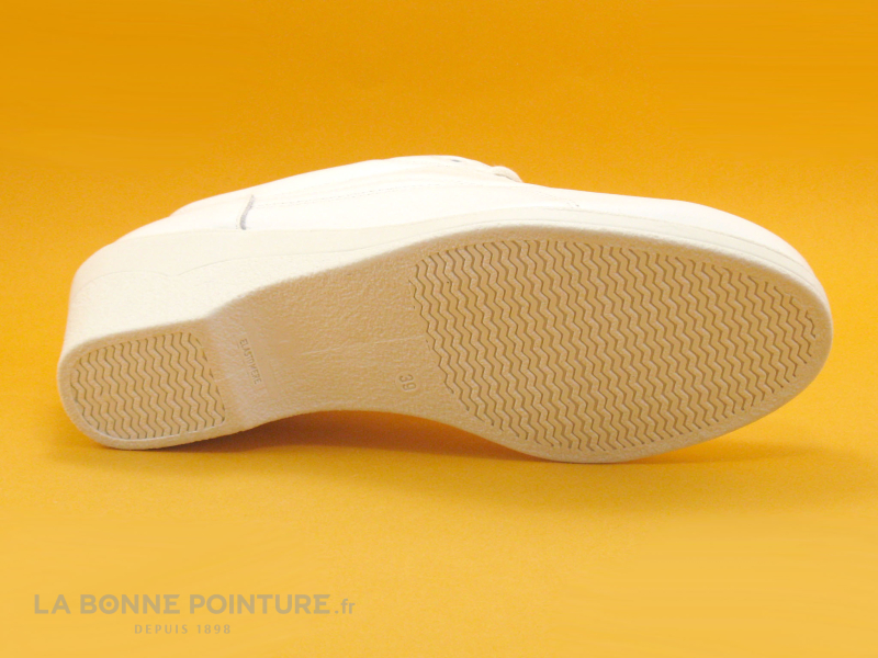 Les chaussures Umo Lucie by Bopy en cuir blanc à semelle compensée, des baskets Femme grand confort à un très bon rapport qualité / prix !