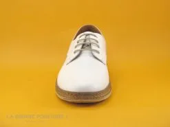 Un lacet en coton blanc traverse 5 oeillets en métal blanc pour fermer efficacement ces chaussures Femme Umo Lucie.