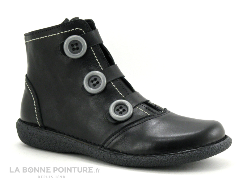 Simples et originales, ces bottines Bran’s sont en cuir lisse noir. Le design nature de ces chaussures est contrasté par trois larges boutons métalliques courant le long du coup de pied.