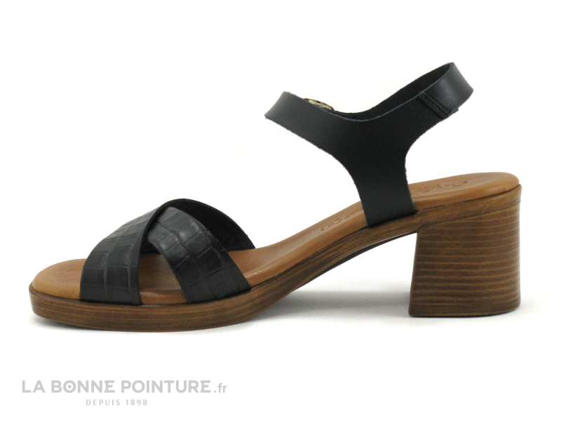 Les nu-pieds en cuir noir à talon épais Carla Tortosa 68045, des sandales mode Femme au meilleur rapport qualité / prix !