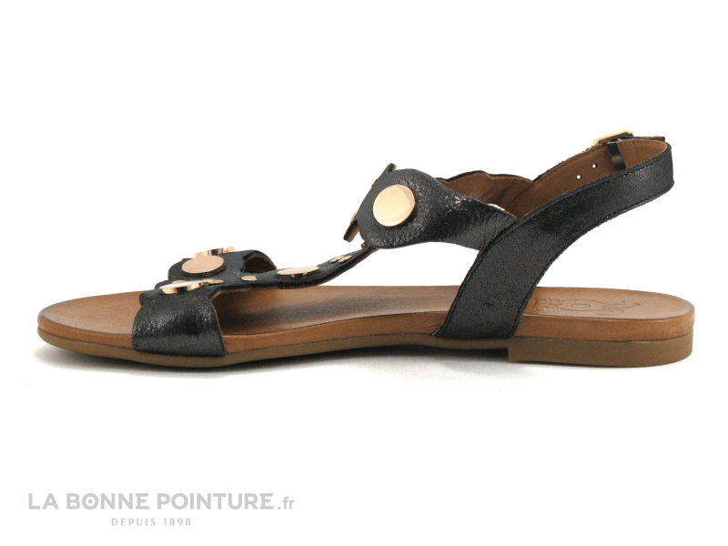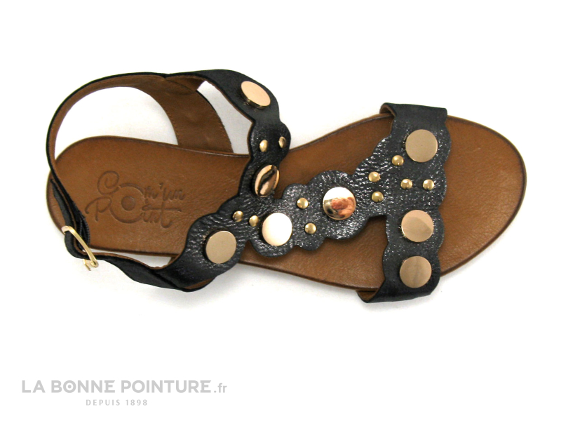 Les sandales plates originales Com un Point Shetri en cuir noir métallisé et Or, des nu-pied mode Femme au meilleur rapport qualité / prix !