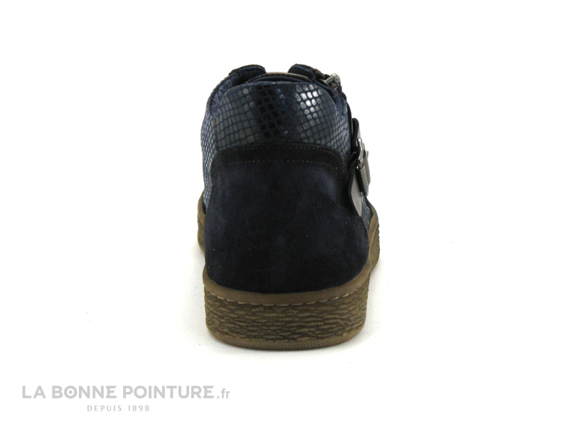 Cette chaussure montante Femme bleu marine associe un cuir velours et un cuir quadrillé aspect verni .