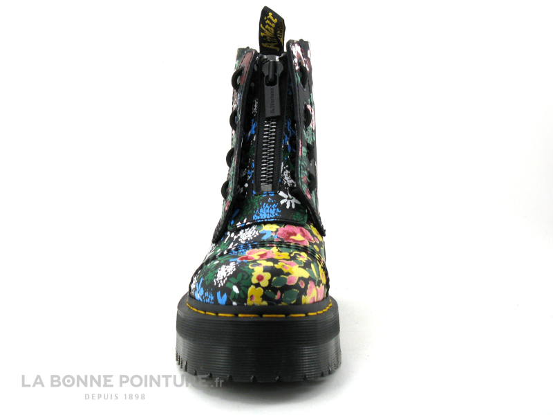 La fermeture éclair sur le dessus permet de fermer rapidement la bottine Dr Martens Sinclair black Floral mash up backhand.