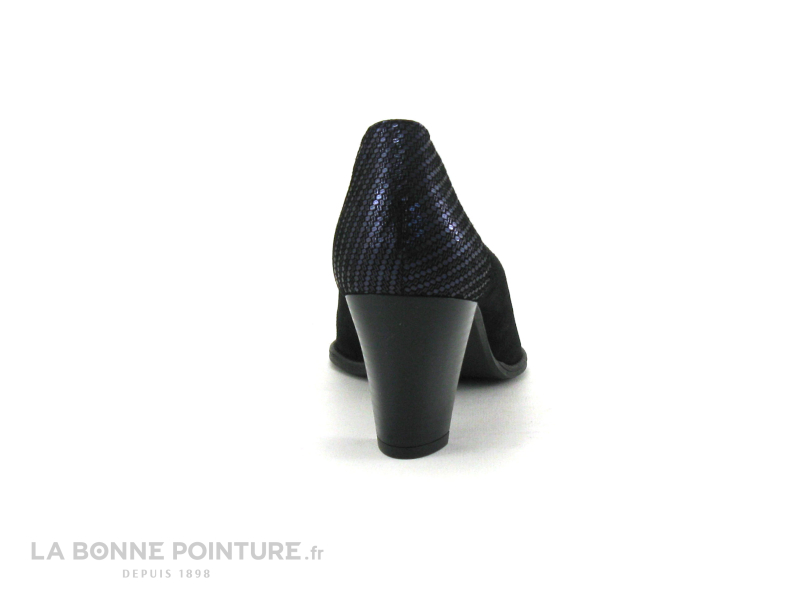 La semelle de marche des escarpins bleu marine Geo Reino Alvate est souple, et le talon noir mesure environ 7 cm de hauteur.