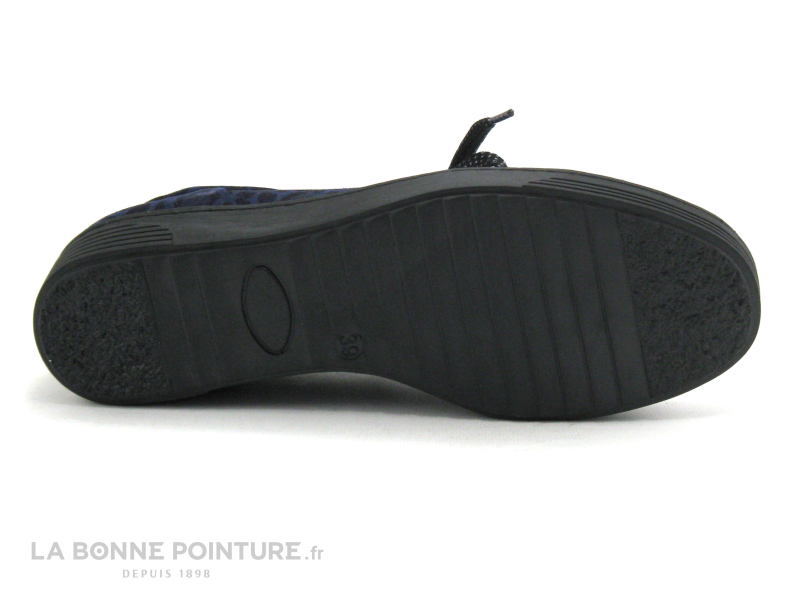 Cette basket de ville Femme est en cuir velouté noir et bleu marine, avec un imprimé léopard original et très mode…
