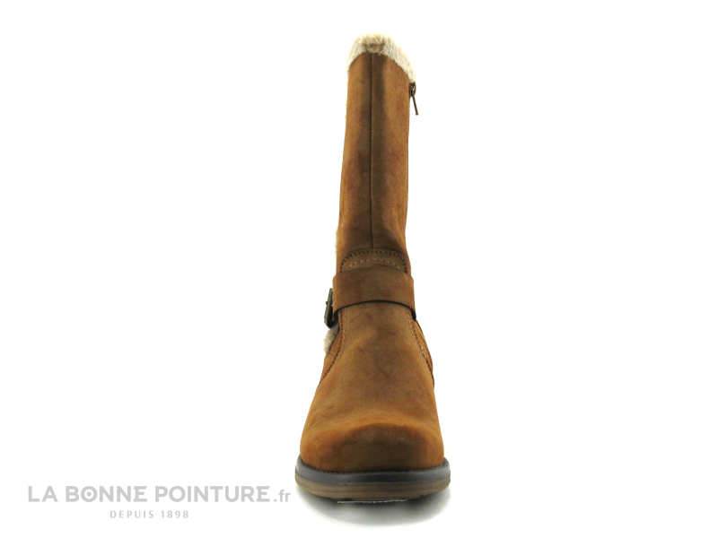 La doublure des bottes mi-hauteur Femme est douce et bien chaude, en fine fourrure marron.
