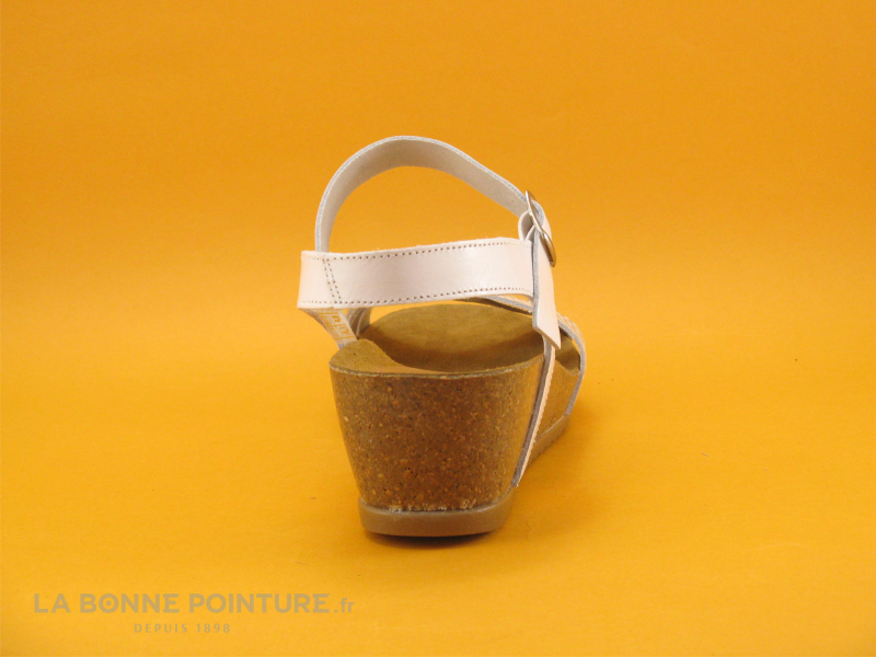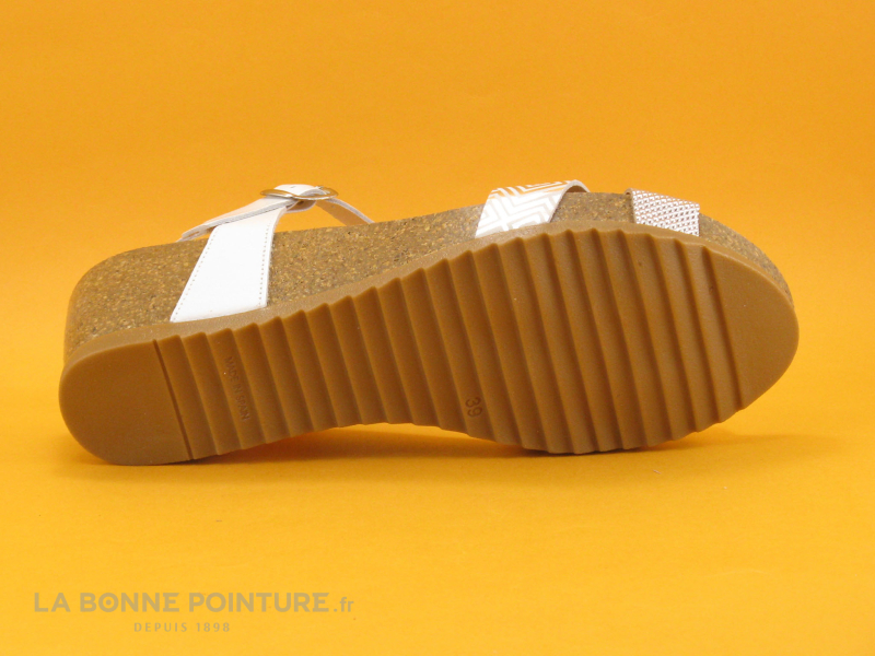 La semelle de marche compensée des nu-pieds Jordana 2934 est en liège, avec un talon d’environ 4.5 cm.