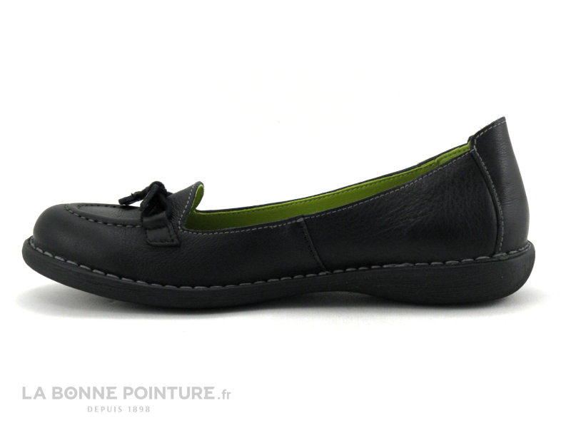 Ce mocassin Femme avec semelle souple Jungla 8030 est fabriqué avec un beau cuir noir, à l’aspect naturellement grainé.