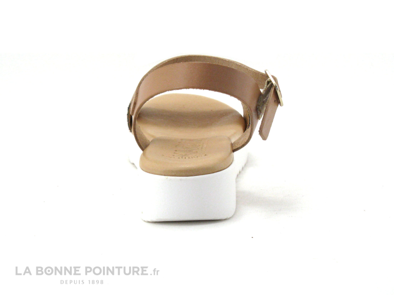 La semelle de la chaussure Kaola contraste en blanc, elle est est légère et dotée d’un talon compensé d’environ 4 cm.