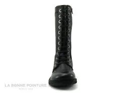 Cette sandale montante Kickers est en cuir lisse noir, composée de fines lanières savamment alignées et entrecroisées.