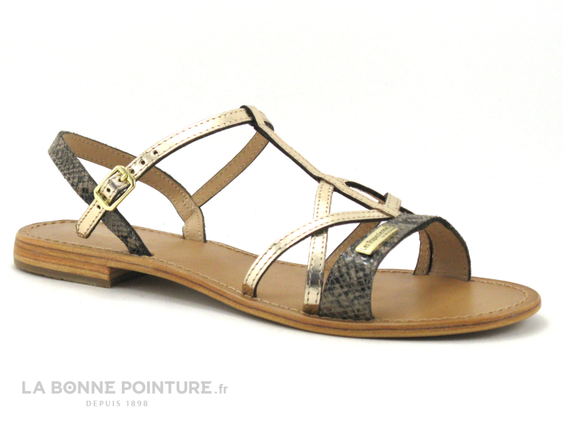 Sandales mode Femme tout en cuir, ces ravissantes plagettes Les Tropéziennes Hironela or et serpent !