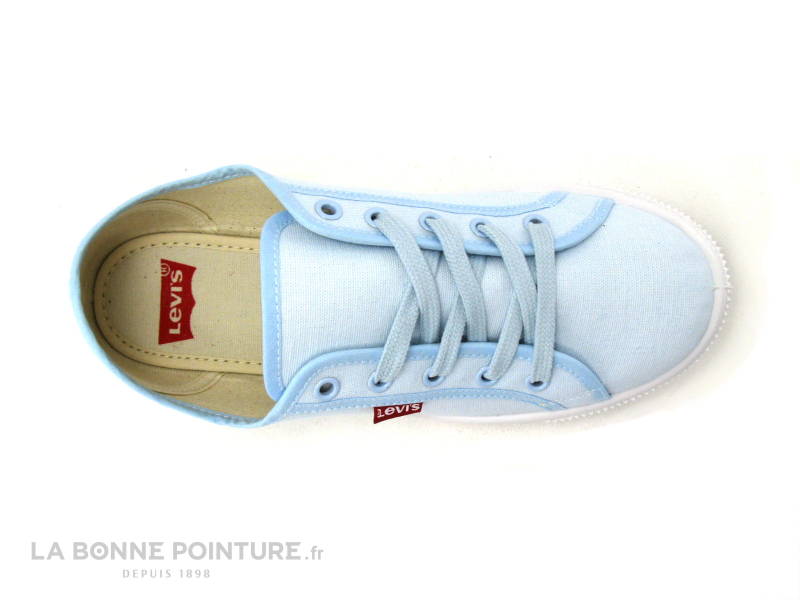 Cette basket Levi’s Femme est en toile bleu clair, avec une petite étiquette rouge marquée Levis® sur le coté.