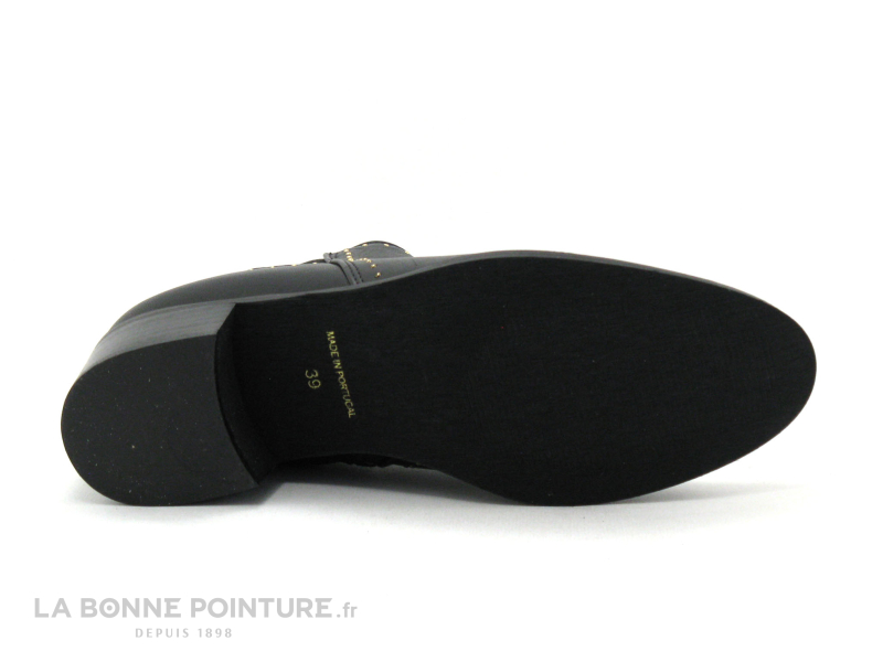 Ces jolies low boots Femme Morans’s Barilla sont en cuir lisse noir, ornées de petites perles dorées sur les contours.