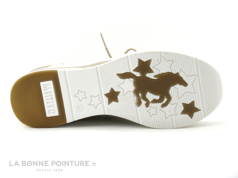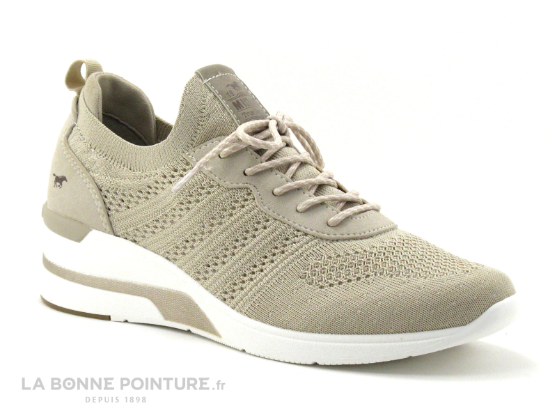 On se réhausse l’air de rien avec ces belles baskets Femme en maille beige Mustang 1378-301 !