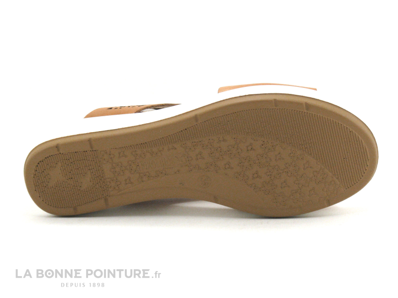 La semelle de marche des chaussures Mykonos contraste en blanc, et le talon bien stable mesure environ 4.5 cm de hauteur.