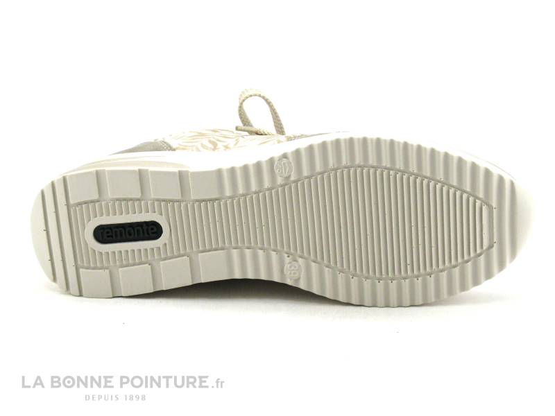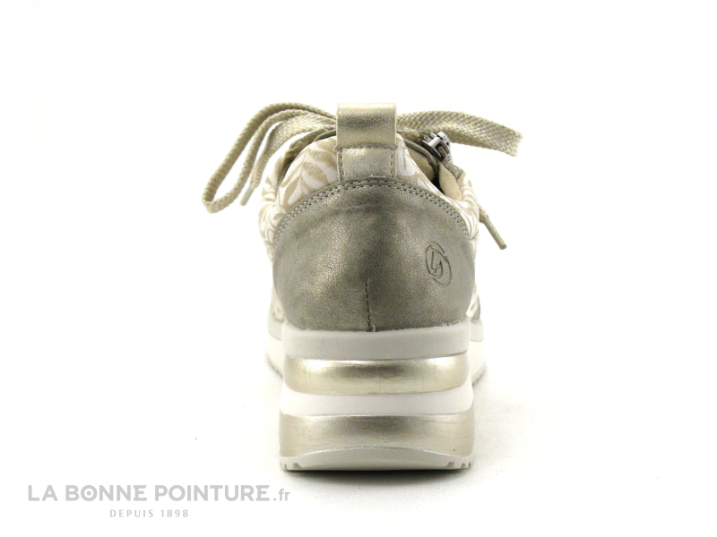 Le lacet plat beige et pailleté passe à travers 5 oeillets afin d’ajuster la basket Remonte D2401 à votre pied.