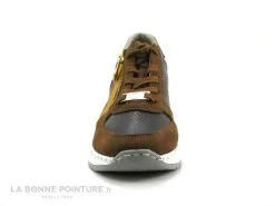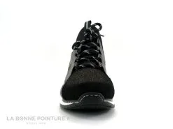 De petites parties beiges et des broderies rouges caractérisent ce beau derbi Femme Rieker 52528.