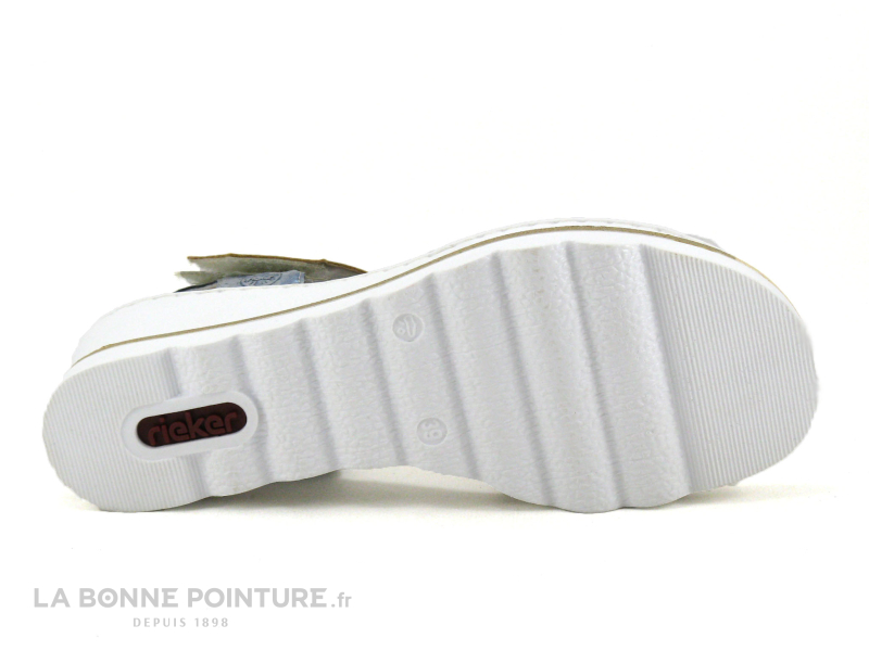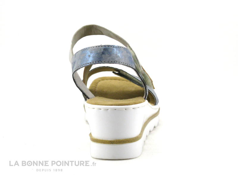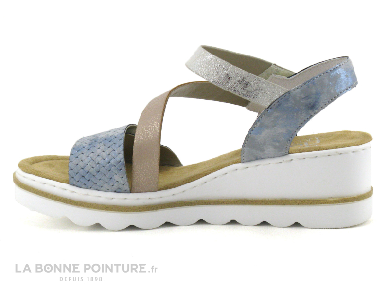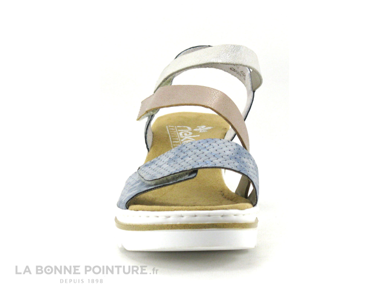 Les nu-pieds Femme bleu et rose métal Rieker 67454-12, des sandales confortables et tendance pour l’été au très bon rapport qualité / prix !