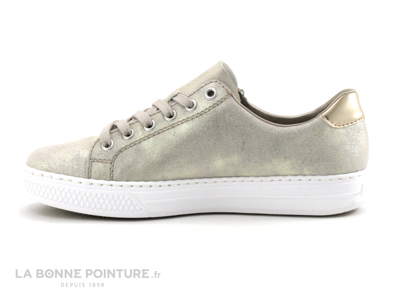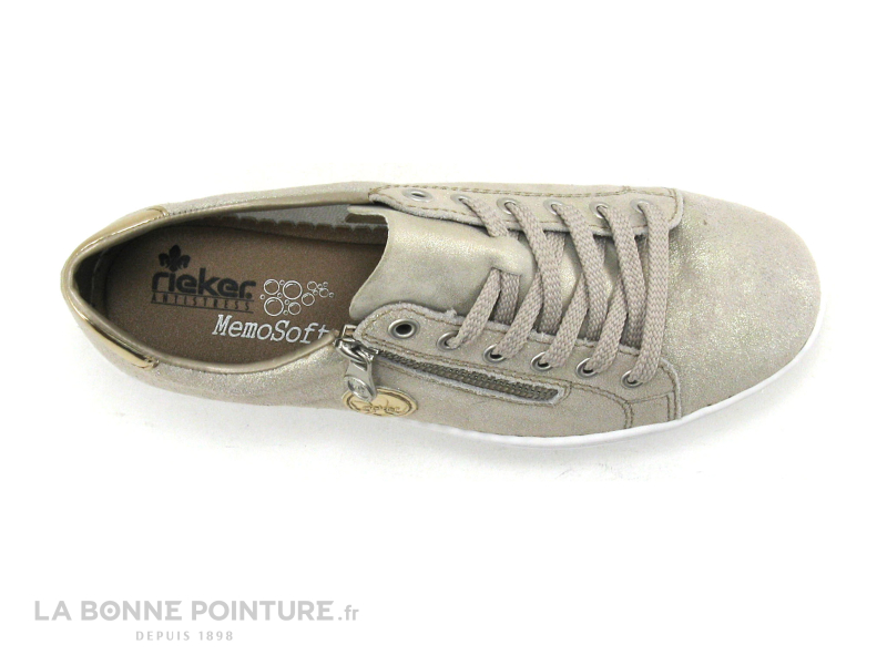 Les tennis Femme en cuir doré Rieker L59L8-62, des baskets zippées mode et grand confort au très bon rapport qualité / prix !