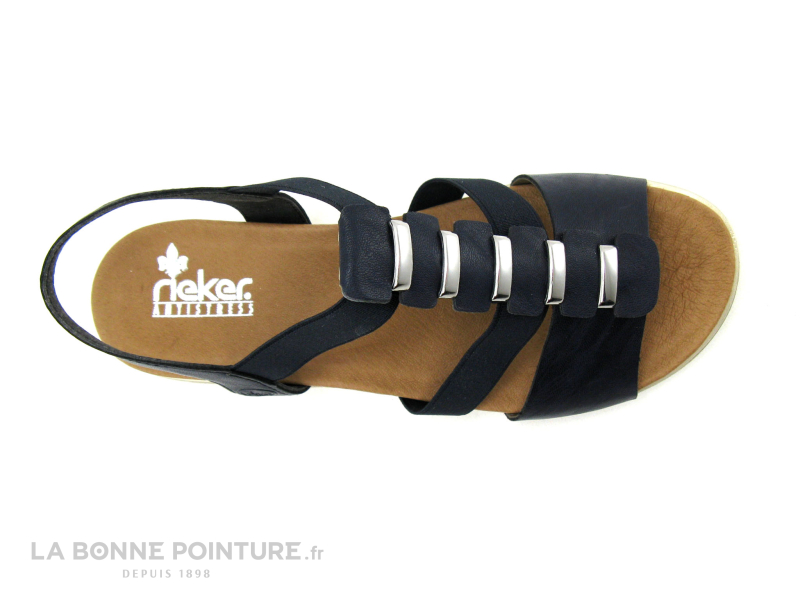 On les enfile et le tour est joué, ces jolies sandales bleu marine Femme Rieker V5051-14 avec première cuir !