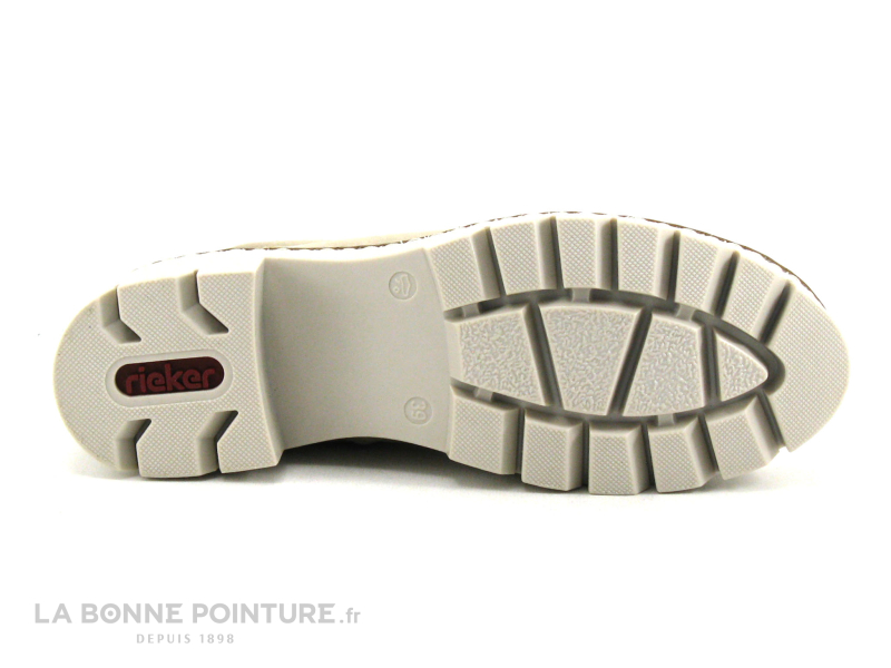 Elles s’imposent avec leur talon épais et leur semelle crantée, ces belles bottines beiges Rieker Antistress X5717-62 !