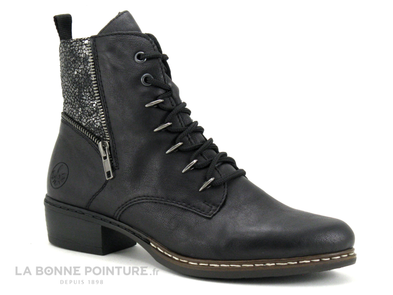 Les boots à lacet Femme noires et argent Rieker Y0800-50, des bottines souples et élégantes qui allient confort et très bon rapport qualité / prix !