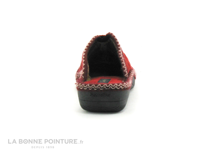 La doublure du chausson Semelflex Alaska est en textile molletonné, et la première en velours bordeaux est confortablement matelassée.