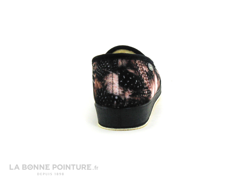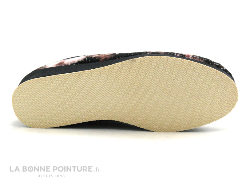 Cette pantoufle Femme Semelflex Calodafne est en velours noir et rose.