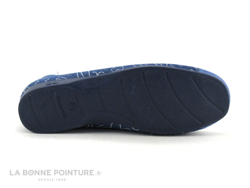 Cette ballerine d’intĂ©rieur Semelflex Dona est toile bleu jeans, avec la pointe veloutĂ©e bleue.