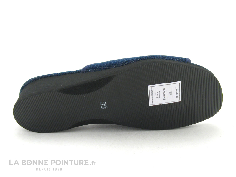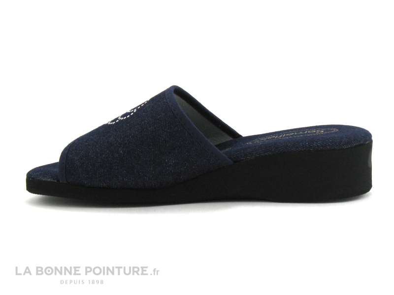 La semelle de propreté des pantoufles Semelflex Isis est bien moelleuse, en toile bleu marine.