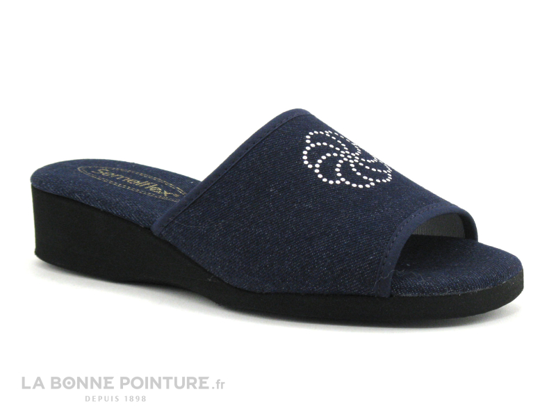 Les mules Semelflex Isis Femme en toile bleu jeans, des pantoufles légères et lavables en machine (30°) au meilleur rapport qualité / prix !