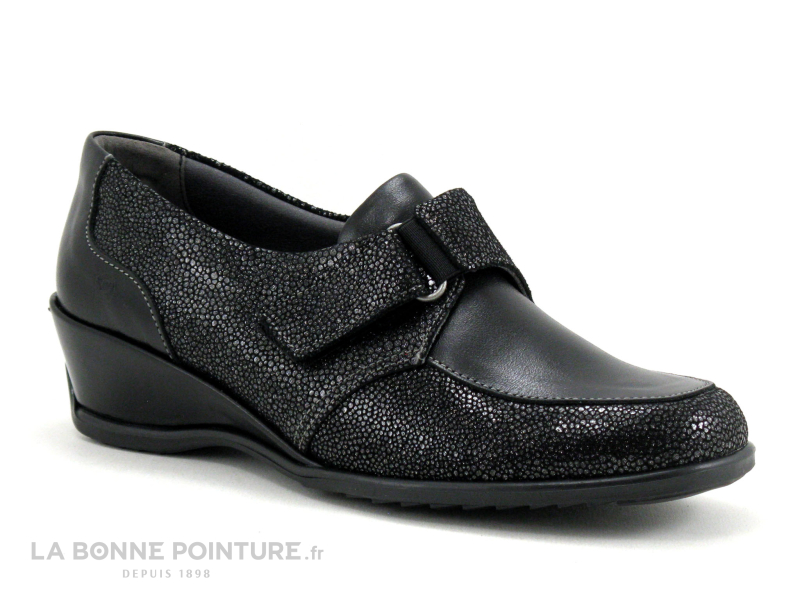 Une ligne à la fois classique et fantaisie pour ces belles chaussures Femme en cuir noir Suave Alpes 5016T !