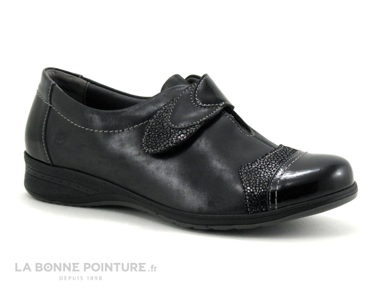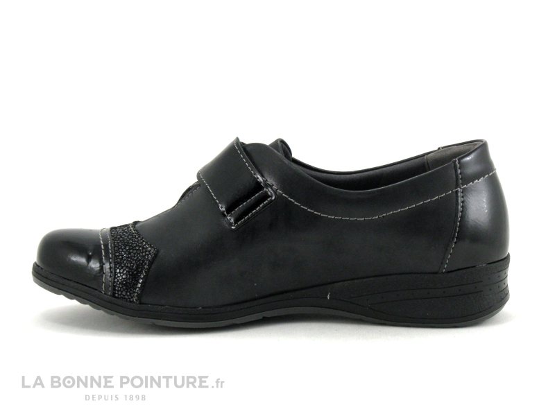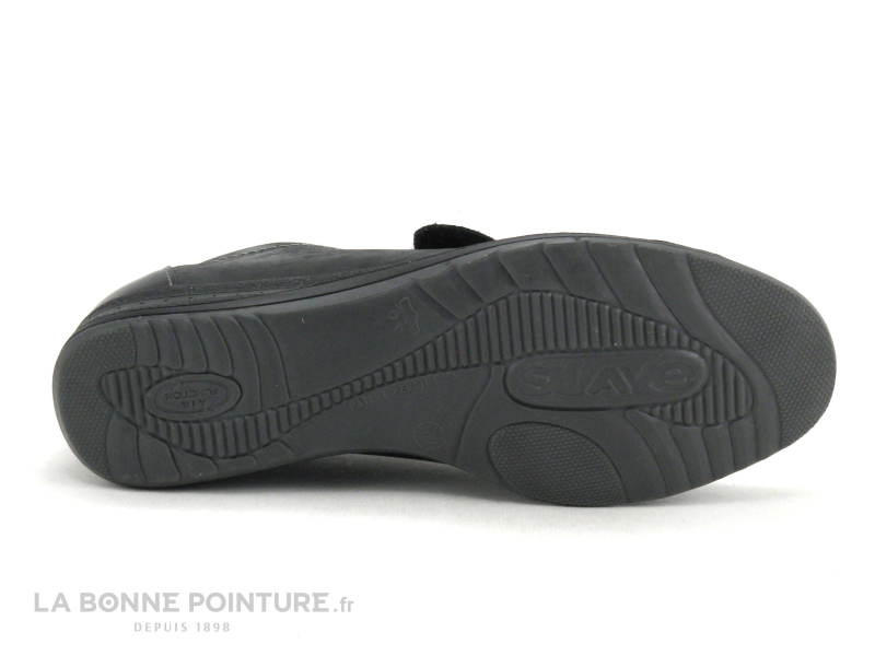 Vous fermerez facilement vos chaussures confort Femme Suave noires grâce à la bride à scratch.