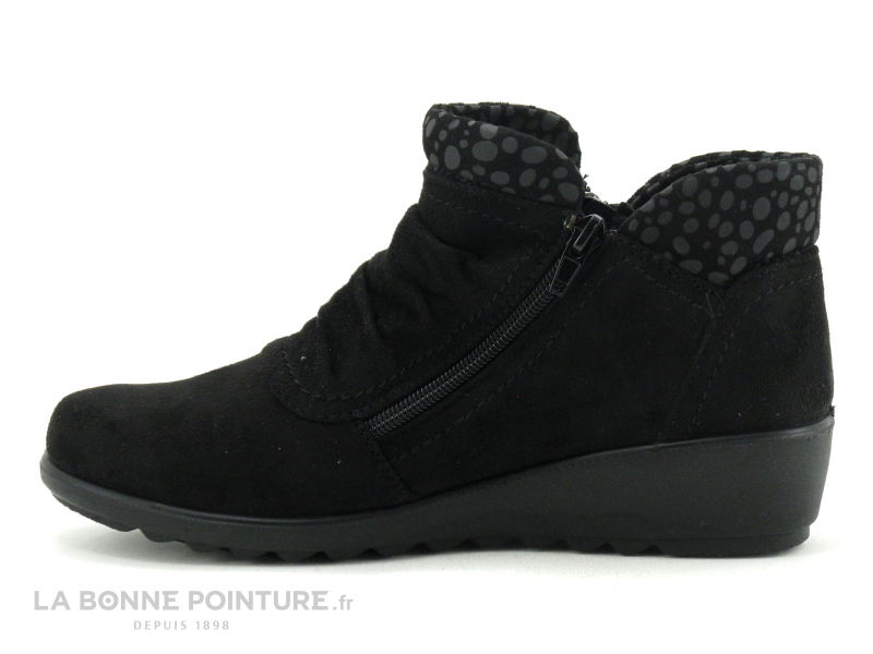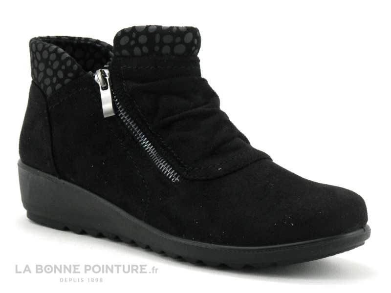 Cette bottine classique Femme est noir velouté, avec le dessus froncé et des petis pois sur le haut.