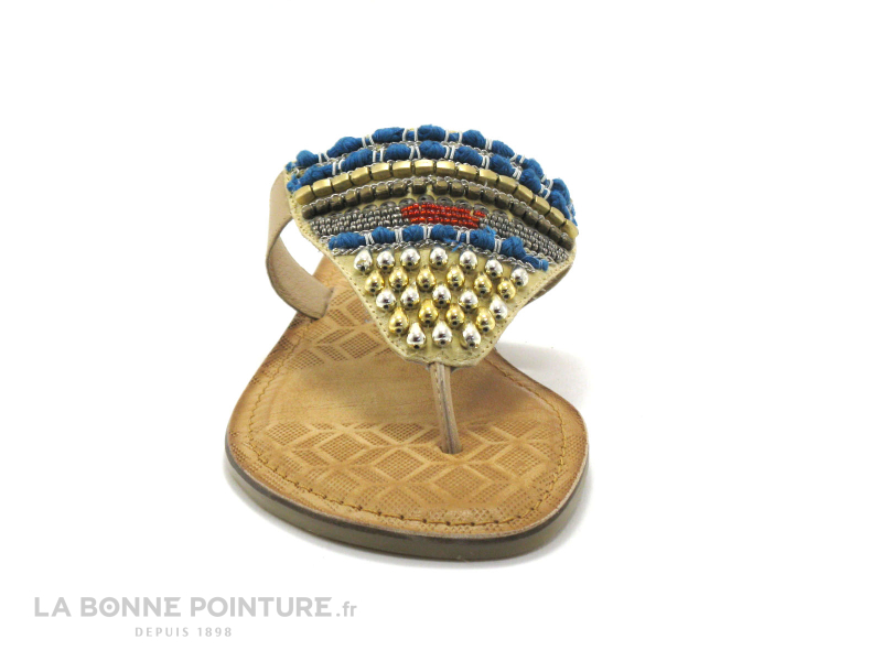 Ces entre-doigts Femme sont en cuir et tissu beige, avec des perles, des chainettes et des broderies qui habilleront avec charme vos petits pieds cet été…