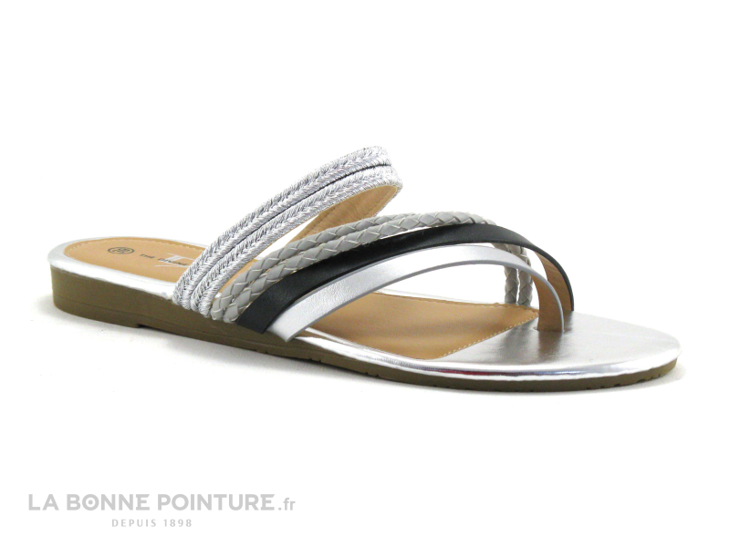 Ces entre-doigts combinent des lanières argent, noires et blanches, pour habiller joliment vos petits pieds en été !