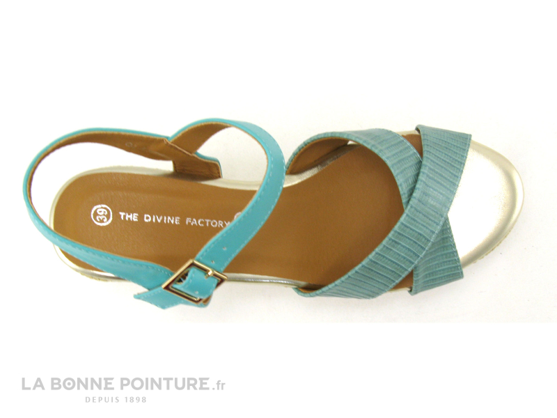 On se fait plaisir dans dĂ©penser trop cet Ă©tĂ© avec ces belles sandales Ă plateforme vert d’eau The Divine Factory QL4350 !