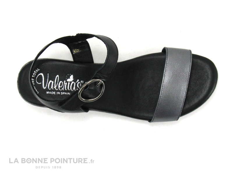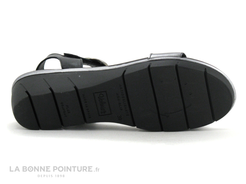 Un prix imbattable pour ces jolis nu-pieds Femme en cuir noir et gris métal Valerias 6023 !