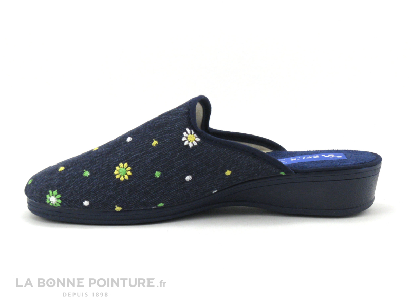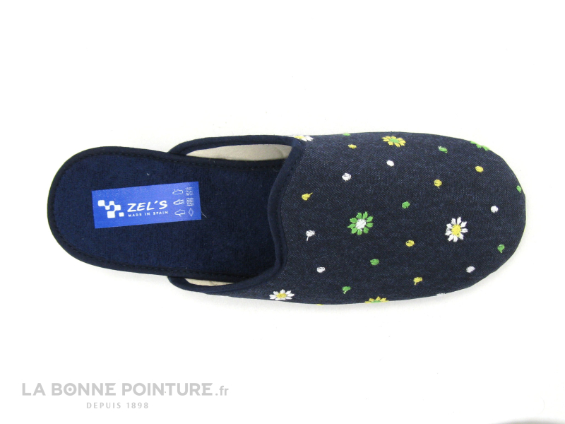 Mules confortables et pas chères, les pantoufles Femme bleu marine à petit talon Zels 9599 !